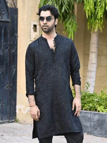 - Black Embroidered Kurta Trouser with Motifs – A Timeless Blend of Elegance & Tradition ✨ Fabric: High-Quality Material with Intricate Embroidery✨ Color: Classic Black✨ Design: Embroidered Motifs on Kurta for a Distinctive Look✨ Includes: Matching Trousers for a Complete Ensemble✨ Ideal For: Weddings, Festive Celebrations & Formal Events What you get: Only Stitched Kurta Trouser Delivery Time: 4 to 5…