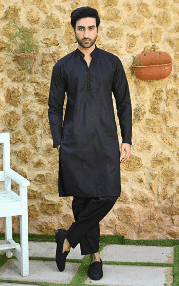 - The Black Embroidered Kurta & Trouser ensemble exudes understated luxury and classic charm. What you get: Stitched Kurta and Trouser with Pockets Fabric: Wash n Wear Color : Black Delivery Time: 5 to 6 days only Cash On Delivery
