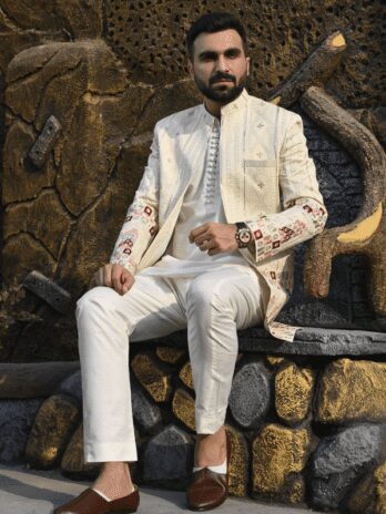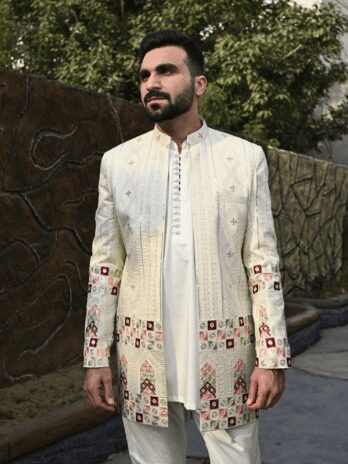 - Step into the spotlight of your special day with our Off White Embroidered Front Open Princecoat What You Will Get : Princecoat Only Fabric : Raw Silk Embroidered Color : Off White 5 to 7 Days Delivery Time