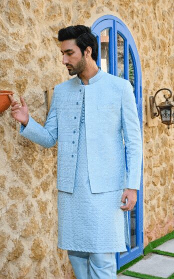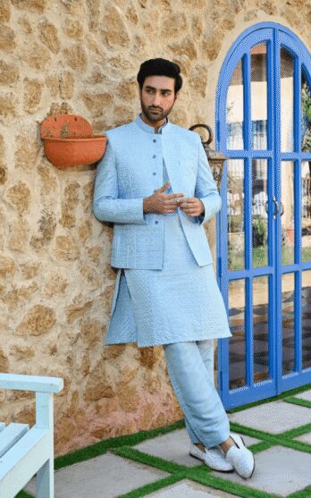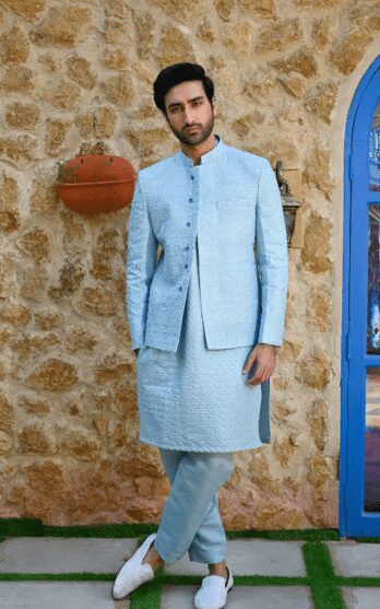 Sky Blue Embroidered Prince Coat