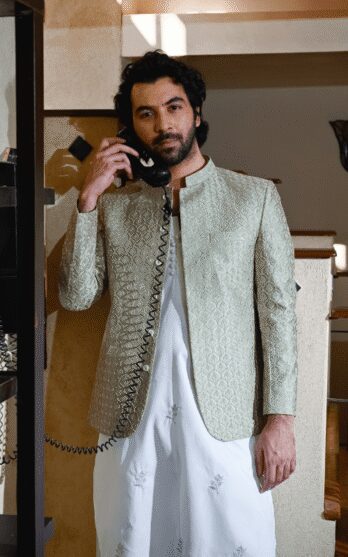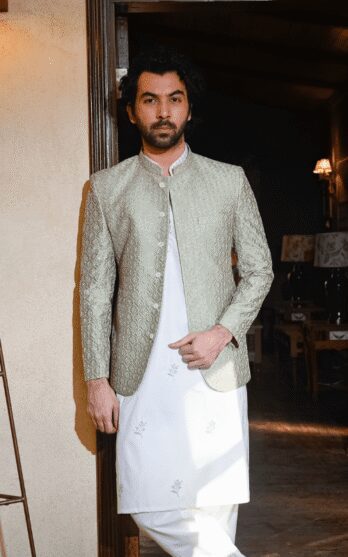 - Sage Green Self-Embroidered Prince Coat – A Refined Statement of Elegance ✨ Fabric: High-Quality Material with Elegant Self Embroidery✨ Color: Subtle & Sophisticated Sage Green✨ Design: Intricately Textured Self-Embroidery for a Luxurious Touch✨ Ideal For: Grooms, Weddings, Festive Gatherings & Formal Events Step into sophistication with this Sage Green Self-Embroidered Prince Coat—where tradition meets modern elegance! What you get: Stitched…