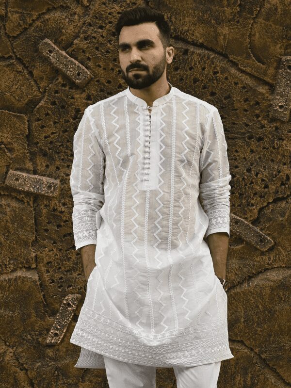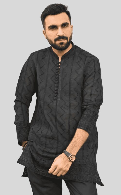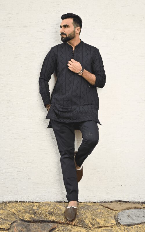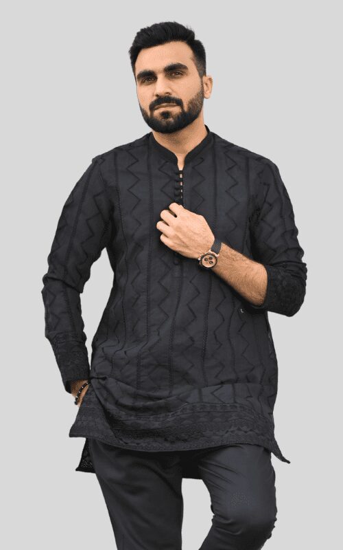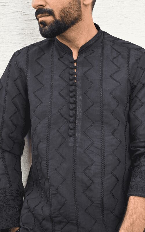 Elevate your festive style with this stunning black & white embroidered kurta. The intricate detailing adds a touch of elegance, making it a perfect choice for special occasions. Crafted with precision, the festive kurta effortlessly blends tradition and contemporary flair, ensuring you stand out with grace and sophistication. Embrace the timeless charm of black fabric adorned with exquisite embroidery, creating a captivating ensemble that captures the spirit of celebration. Whether it’s a cultural event or a joyous gathering, this kurta promises to make a statement with its refined and festive allure.