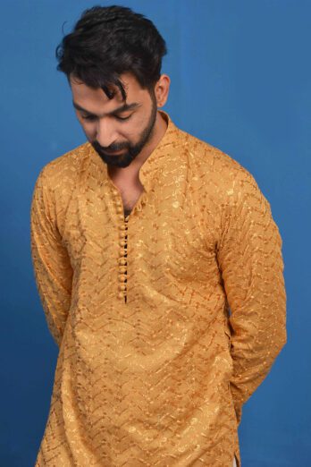 A Black Wedding Sherwani exudes charismatic sophistication, making it an exceptional choice for grooms. The rich black hue symbolizes a blend of modern style and timeless elegance. This Sherwani features delicate patterns and detailing, adding a touch of opulence to the ceremonial ensemble. Tailored to perfection, it is a statement piece that effortlessly combines tradition with contemporary allure.