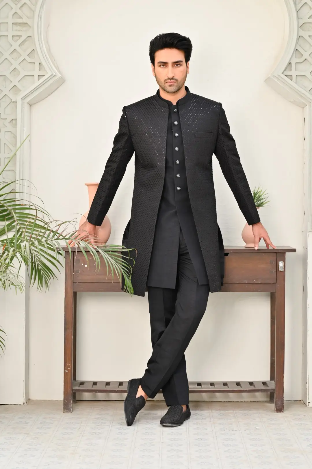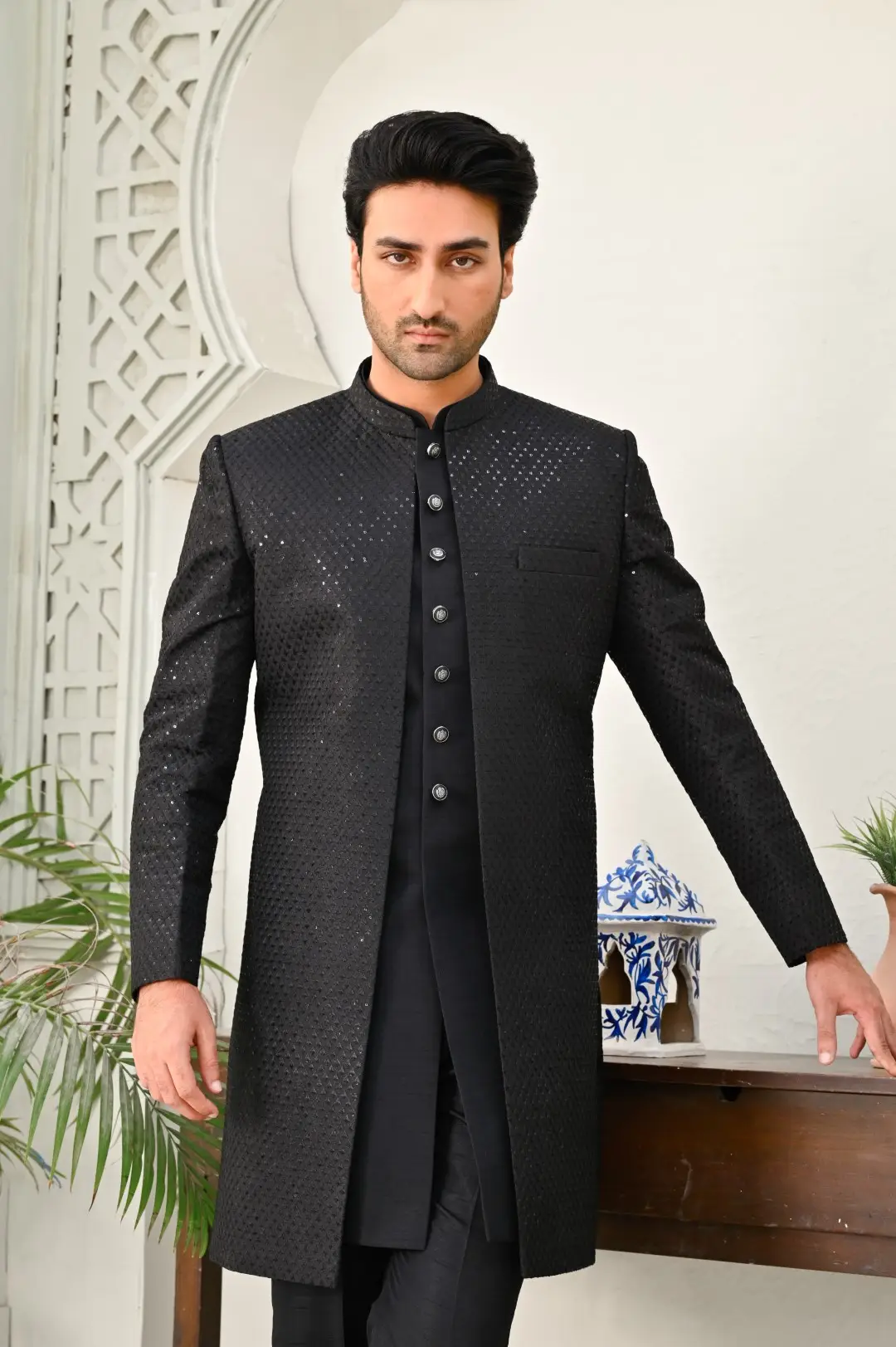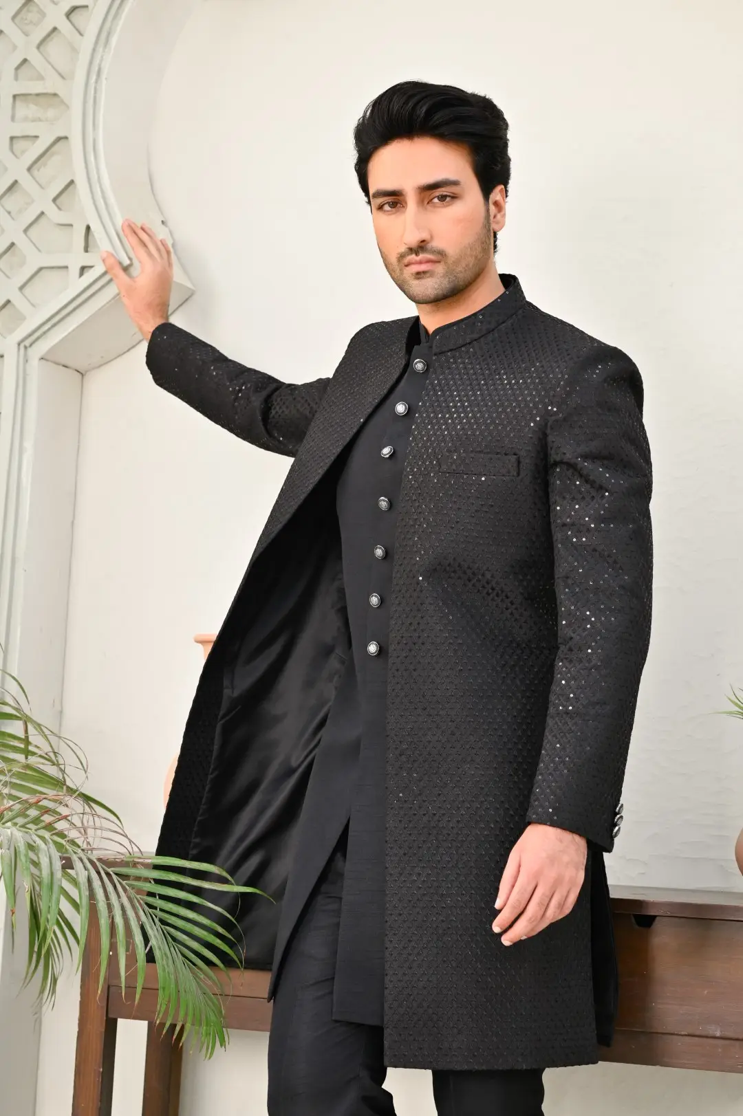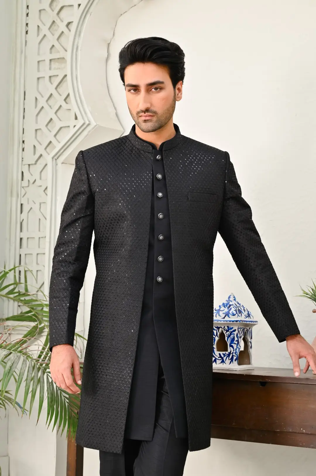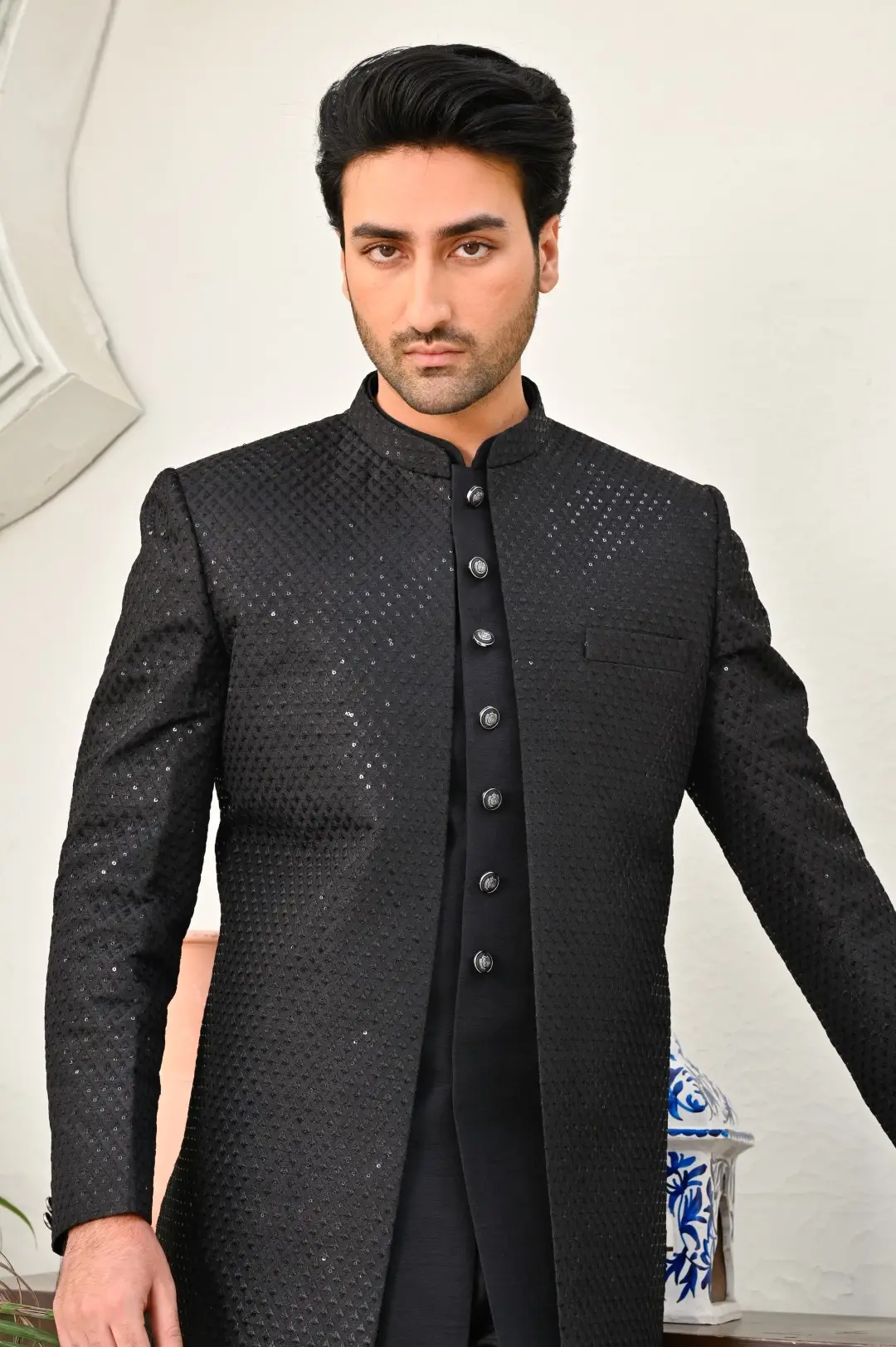 Be the first to review “Black Embroidered Sequin Sherwani”