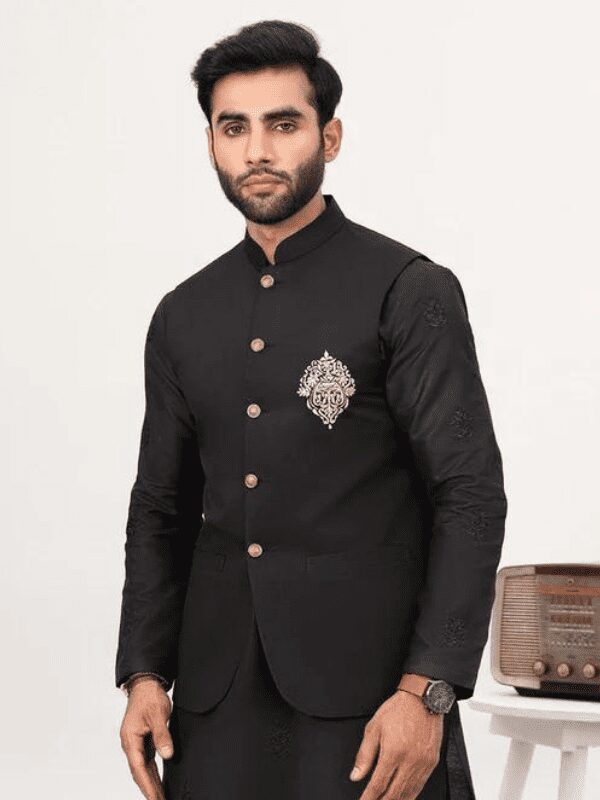 Male Fit-Single Breasted, Six Button Fastening, Embroidered with 2 Bottom Pockets