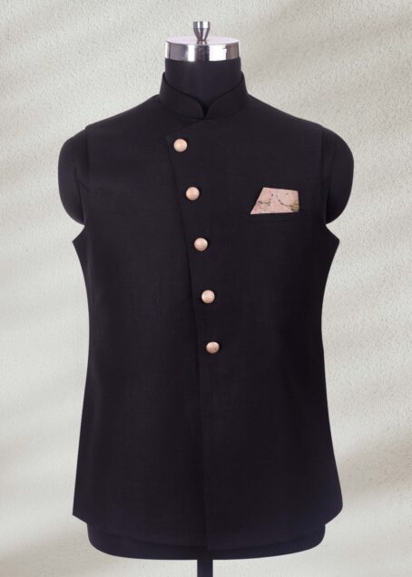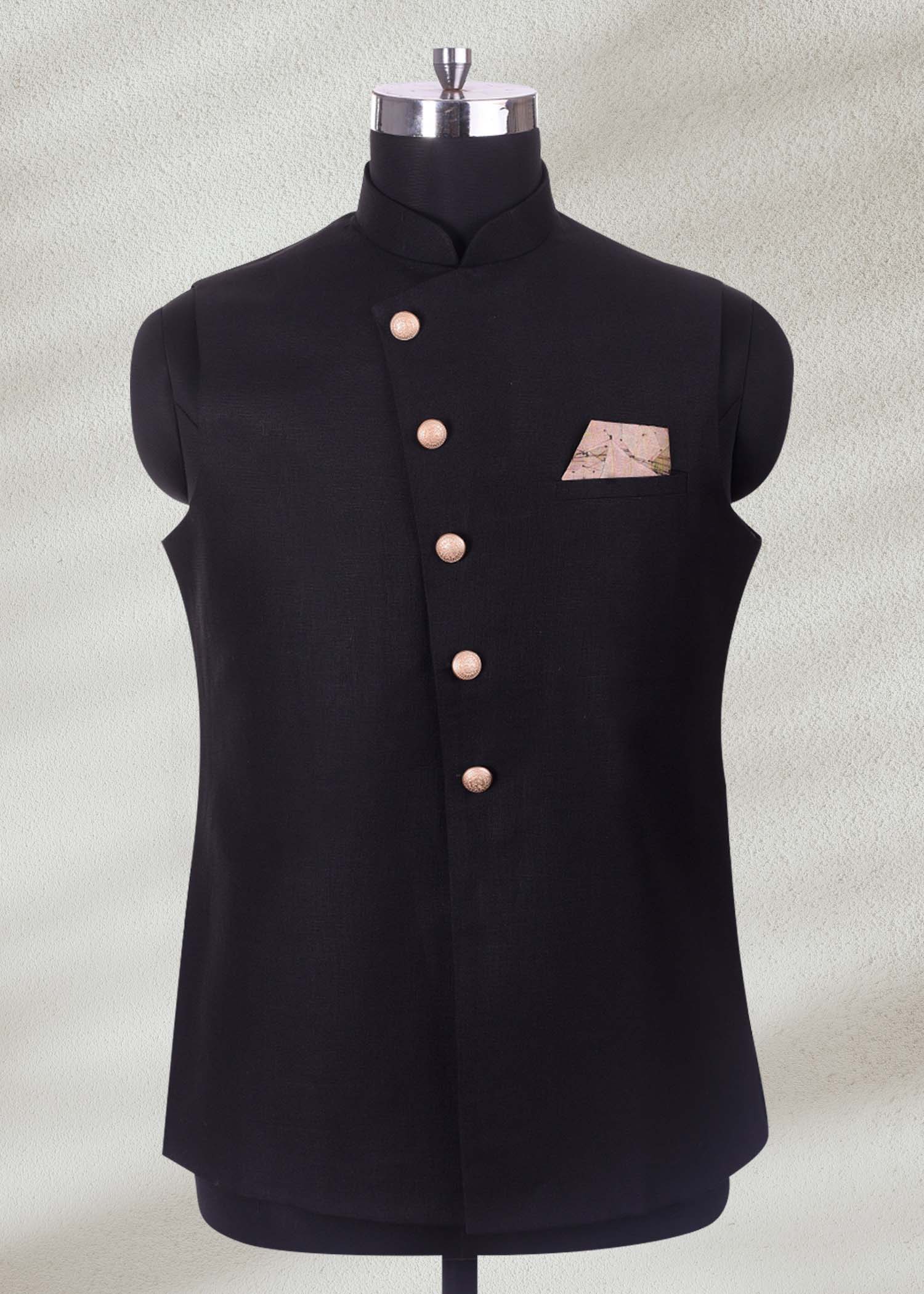 Product Overview: This Black Traditional Jacket has a unique cut. Crafted from suiting fabric to provide a classic look, this waistcoat also features a Plain expression. It is a straight cut, classic fit, that fits easily around the chest and then tapers at the waist creating a broad shoulder-slim waist look. It is perfect for occasions as well as layering over basic clothing.