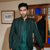 Step into timeless elegance with this Emerald Green Self-Embroidered Prince Coat—where tradition meets modern sophistication!