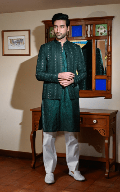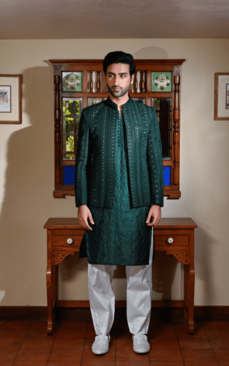 Dark Green Embroidered Prince Coat – A Timeless Symbol of Elegance & Royalty