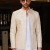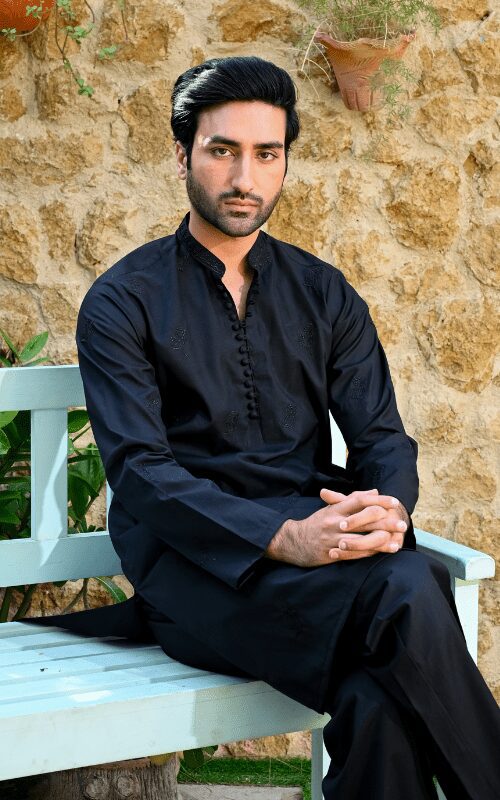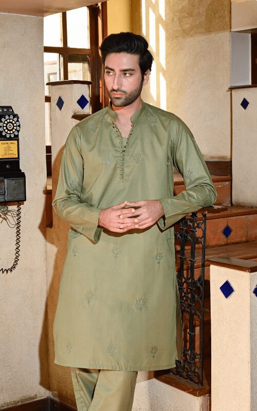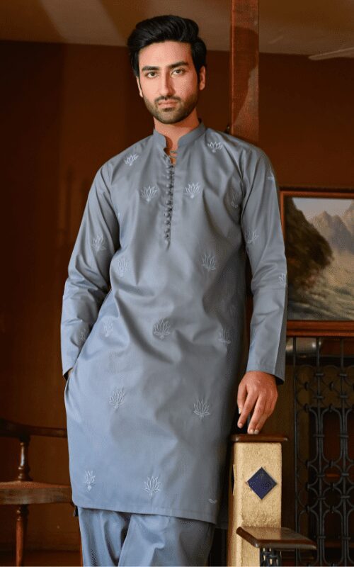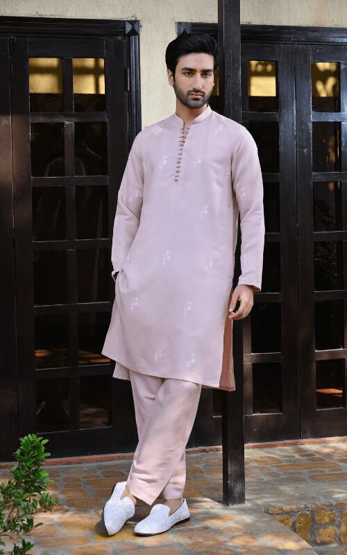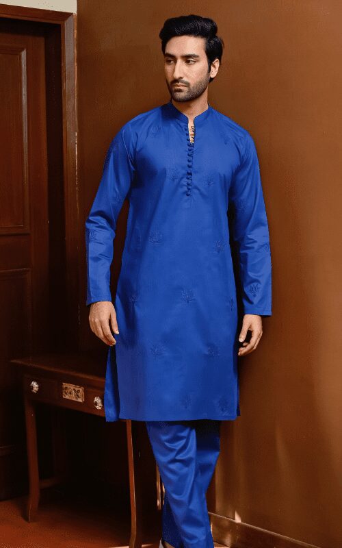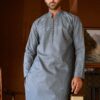 A sleek embroidered kurta with matching trousers, combining elegance and modern style for a perfect formal look.