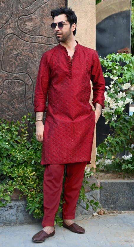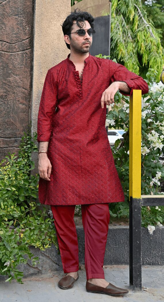 What you Get: Maroon Embroidered Kurta with matching Trouser