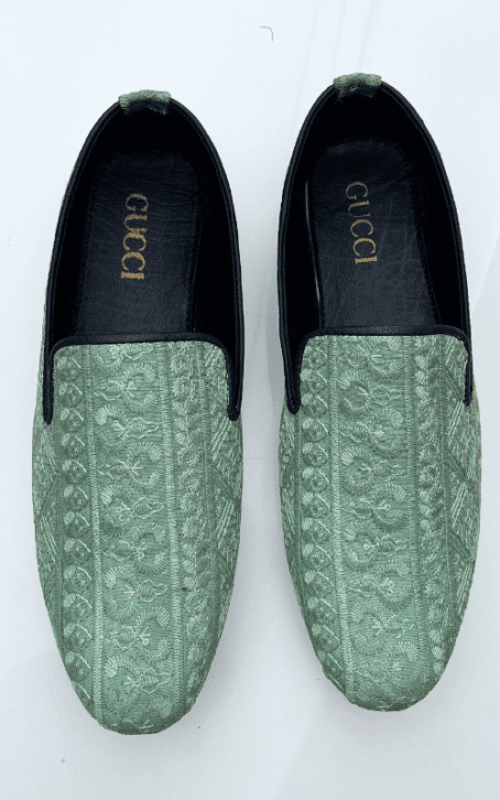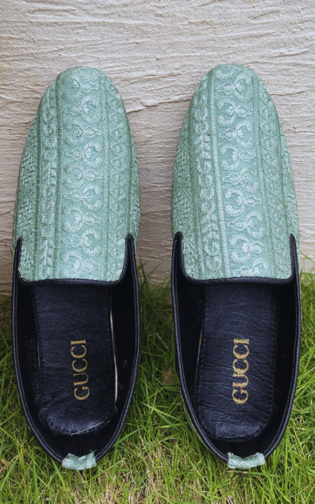 Step into timeless elegance with these exquisite mint green wedding shoes, intricately embroidered and adorned with delicate sequin work. Designed for the modern groom who values tradition, these shoes perfectly complement Mehndi, Barat, and Nikkah ensembles. The rich craftsmanship and comfortable fit make them an ideal choice for adding regal charm to your special day.