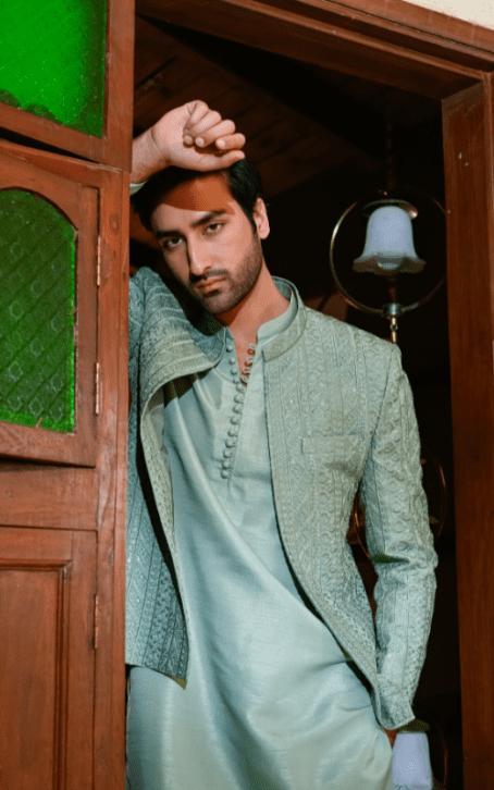 Mint Green Self-Embroidered Prince Coat – A Statement of Subtle Royalty