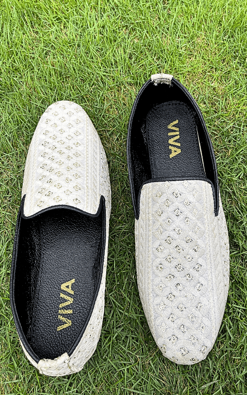 Off White Embroidered Shoes For Wedding