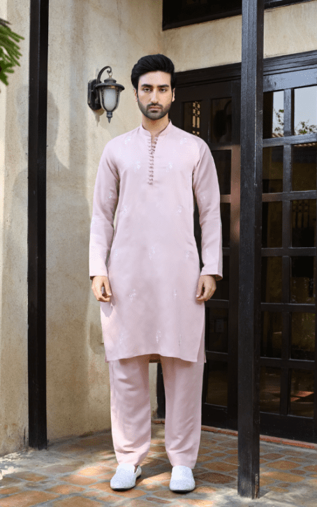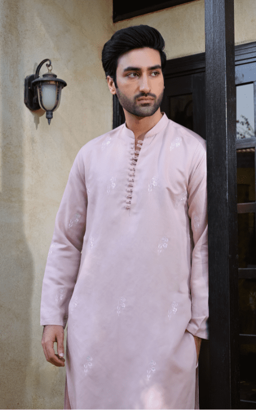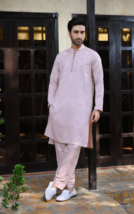 A sleek embroidered kurta with matching trousers, combining elegance and modern style for a perfect formal look.